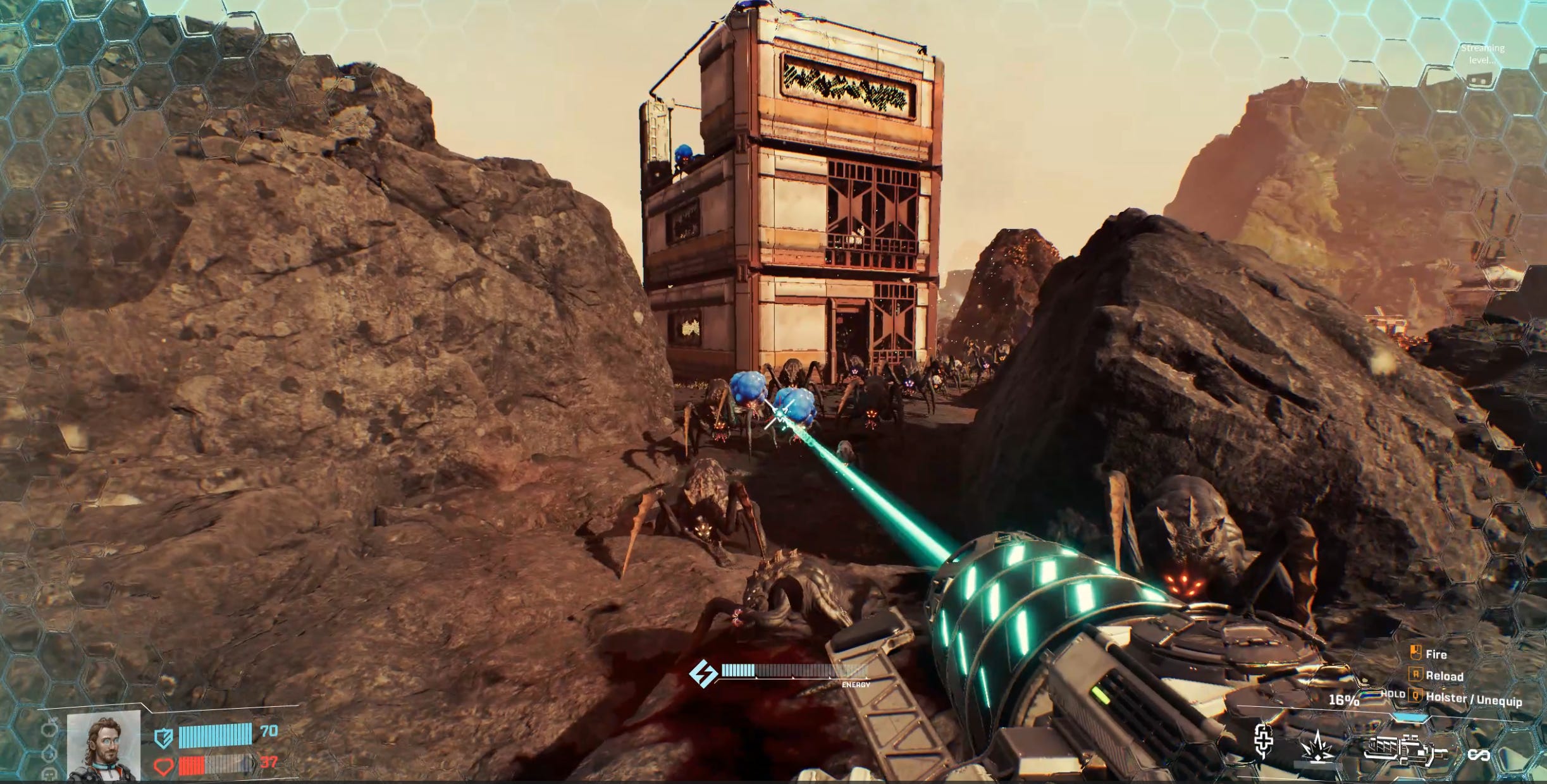Hostile lifeforms are present everywhere in Arcadia-7, but even more so in points of interest. Every time you get into an abandoned base, hordes of aliens will pop out of the soil.