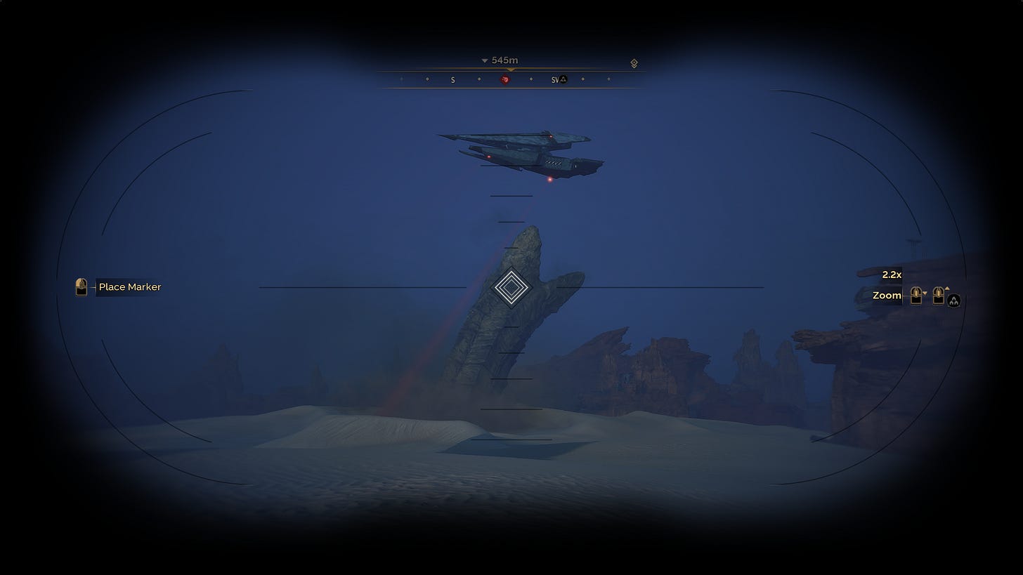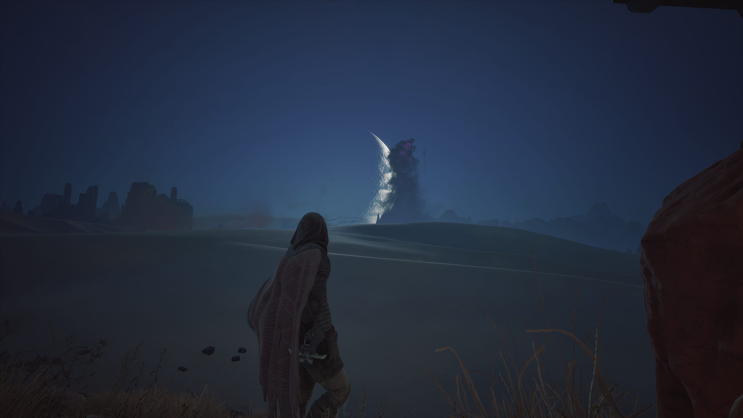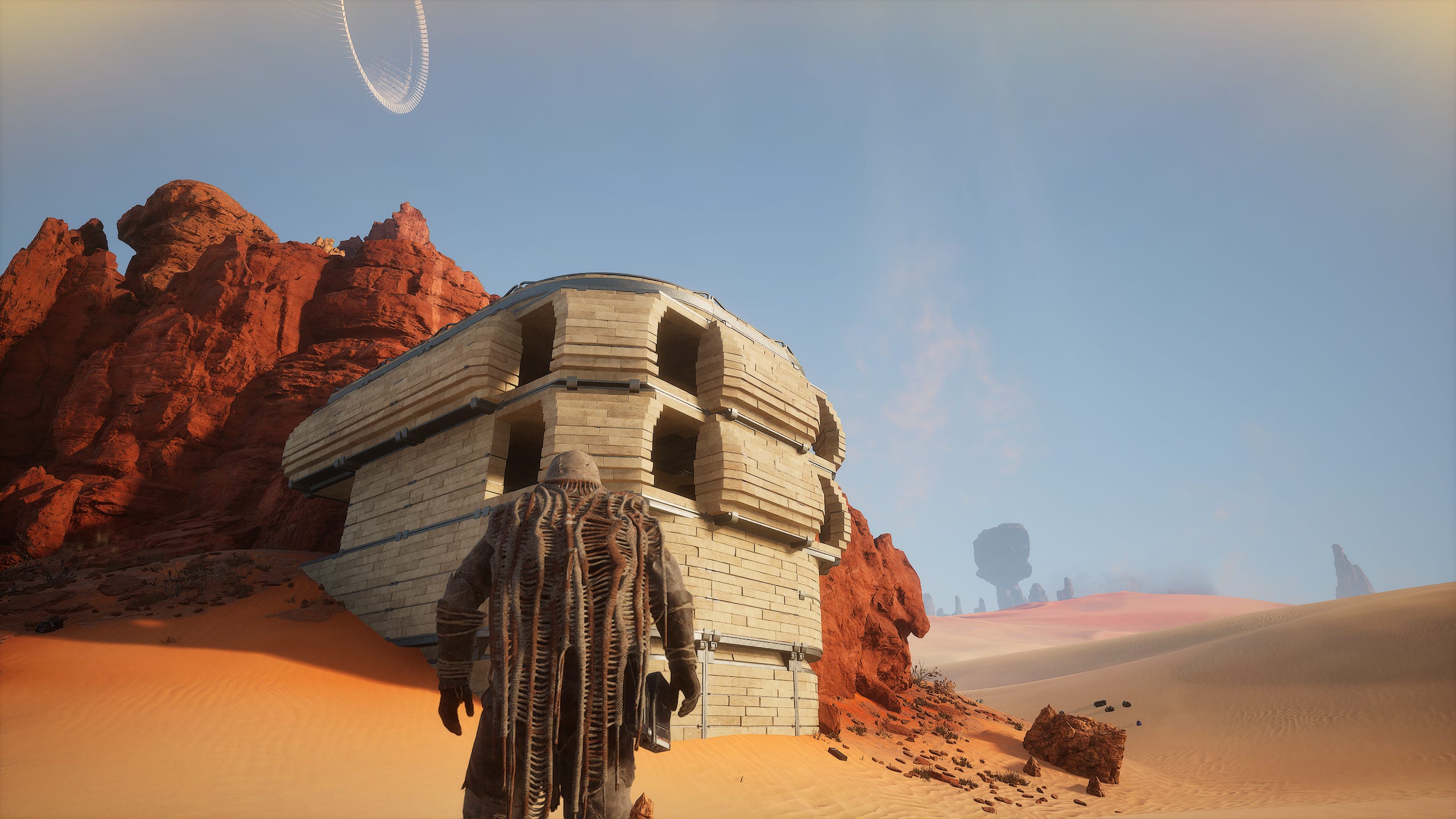 Harder than it looks, I would wager. Arrakis might be a desert, but it is by no means empty. There are points of interest everywhere you look. Huge rocks loom on the horizon, calling you to explore them. Verticality is a huge part of the visual design of Funcom’s Arrakis. You’ll rarely look around without finding a few tall structures to explore.